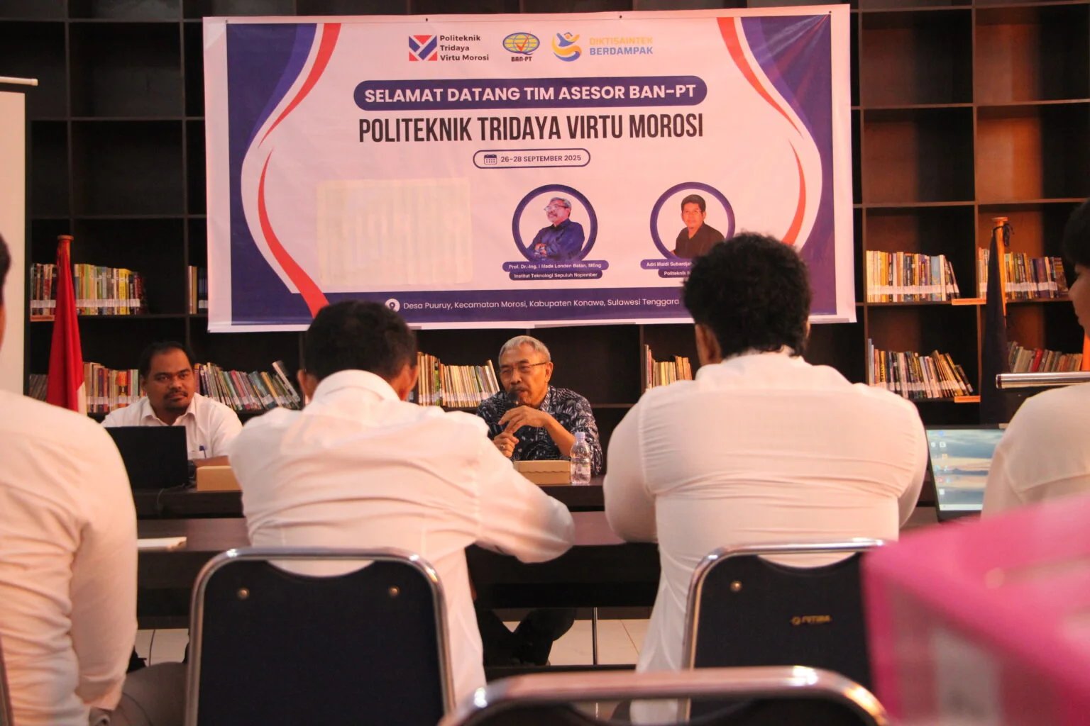 Politeknik Tridaya Virtu Morosi (PTVM) mengikuti asesmen lapangan yang diselenggarakan oleh Badan Akreditasi Nasional Perguruan Tinggi (BAN-PT) pada 26 - 28 September 2025. Kegiatan ini merupakan bagian dari proses akreditasi institusi yang menjadi penentu mutu penyelenggaraan pendidikan tinggi di PTVM.